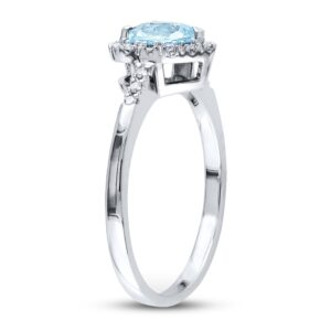 Aquamarine Heart Ring 1/10 ct tw Diamonds Sterling Silver