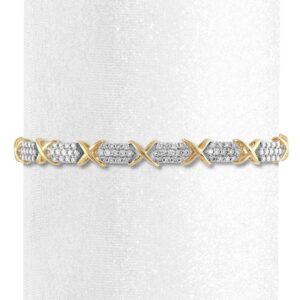 The word “mom” alternates with infinity symbols decked in diamonds in this pretty bracelet for her, styled in sterling silver. Hearts of 10K rose gold complete the look. Totaling 1/10 carat in diamond weight, the 7.5-inch bracelet secures with a lobster clasp.